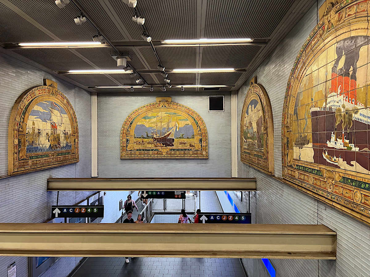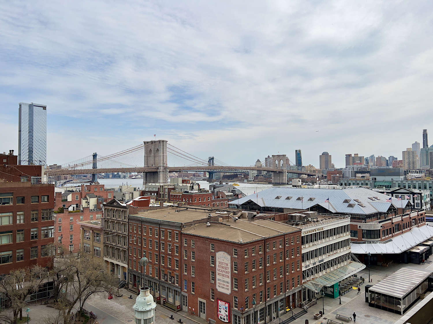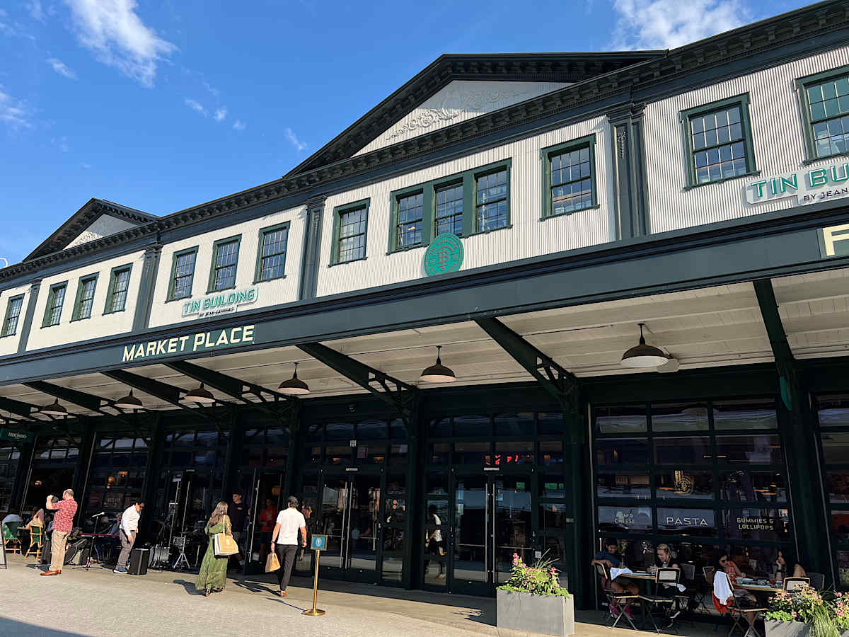 The South Street Seaport (シーポート)は、ファイナンシャルディストリクト東部の歴史的保存地区です。蒸気船があった頃からの建物を保存しつつ、博物館やいろいろな小さな商店や飲食店で賑わっていて、屋外でアートの展示が頻繁に行われます。独立系書店の McNally Jackson Books も新店舗を構えました。この地区に書店が現れたのは意外でしたが、元々人気がある書店ですし、観光客も近隣住民も立ち寄れる場所として、この地区に良い効果をもたらしているように見えます。東にイーストリバー沿いまで抜けると、一帯は Pier (ピア/埠頭)で、フェリーの発着場もありますが大部分はレストランを中心とした商業地区になっています。特に、Fulton Fish Market がブロンクスに移転した跡地が2022年に再開発され、ジャン=ジョルジュ(Jean-Georges Vongerichten)が経営に関わる "The Tin Building" ができました。これは多数のカジュアルなレストランと食料品及び物品販売の複合施設ですが、テーマパークの要素があり、体験による満足も目指した、ジャン=ジョルジュ版の Eataly と目されています。