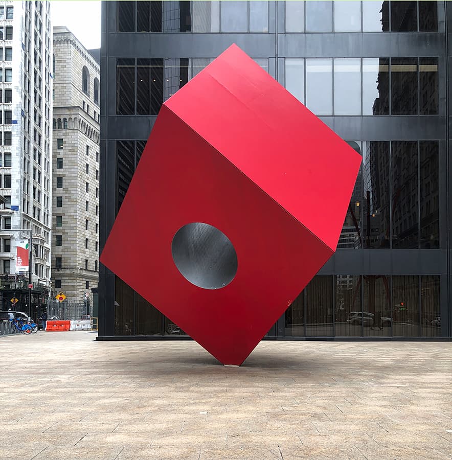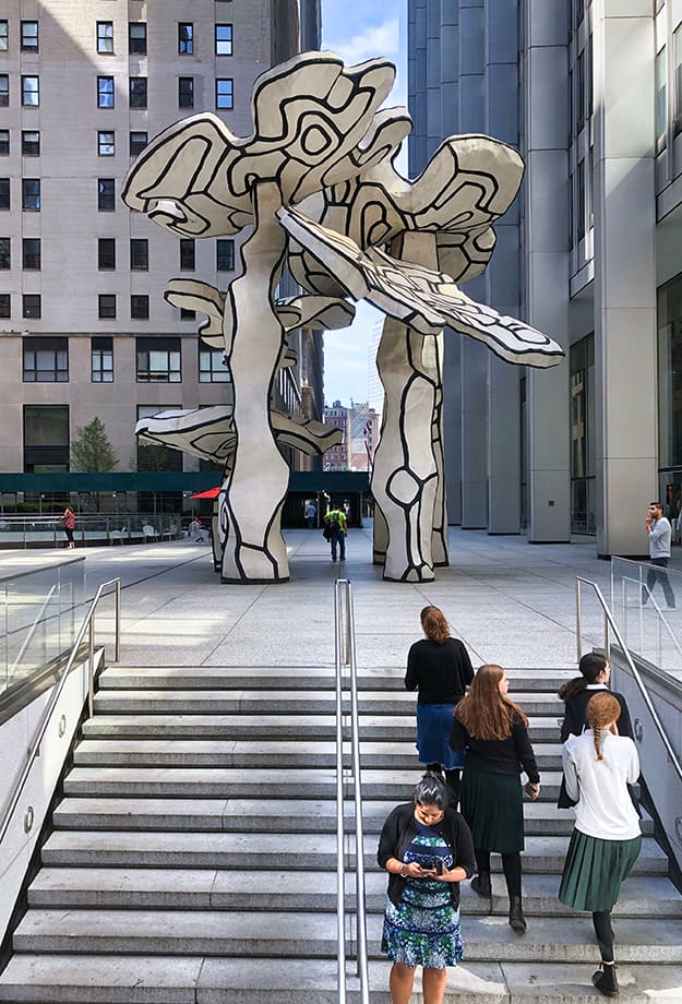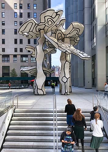 左:28 Liberty St 正面の彫刻 'Group of Four Trees'