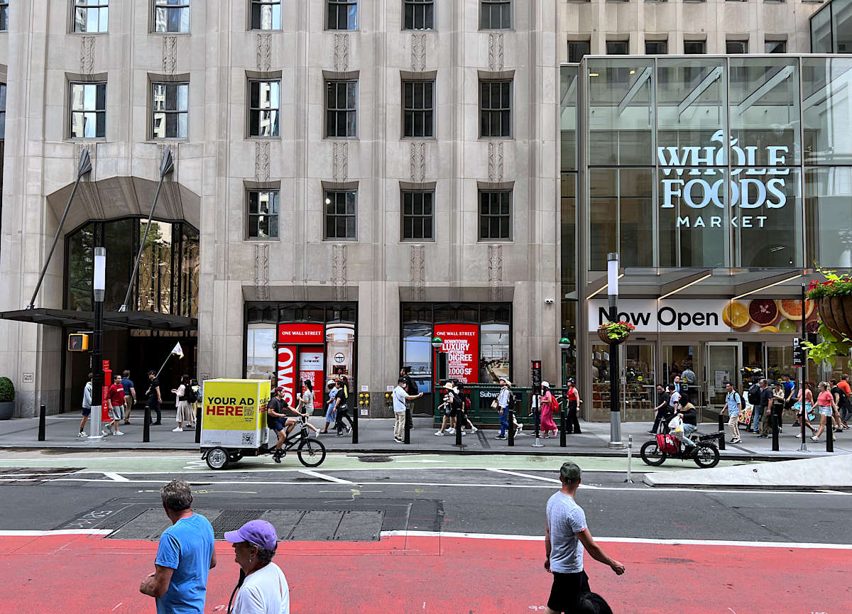 スーパーマーケットは各所にありますので食料品の購入に困ることはありません。特に、2023年に Whole Foods Market がウォールストリートにできました。Whole Foods Marketは隣の地区のトライベッカにもありますから、いかにファイナンシャルディストリクトで人口が増えているかを示唆しています。2025年3月にはWhole Foods Marketの隣にフランスの百貨店 Printemps (プランタン)が開業しました。