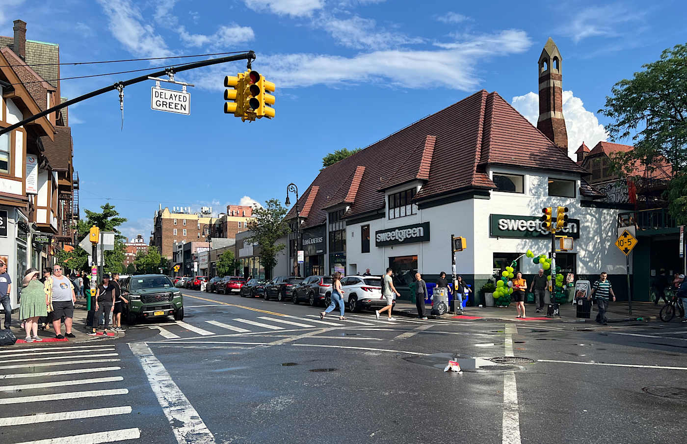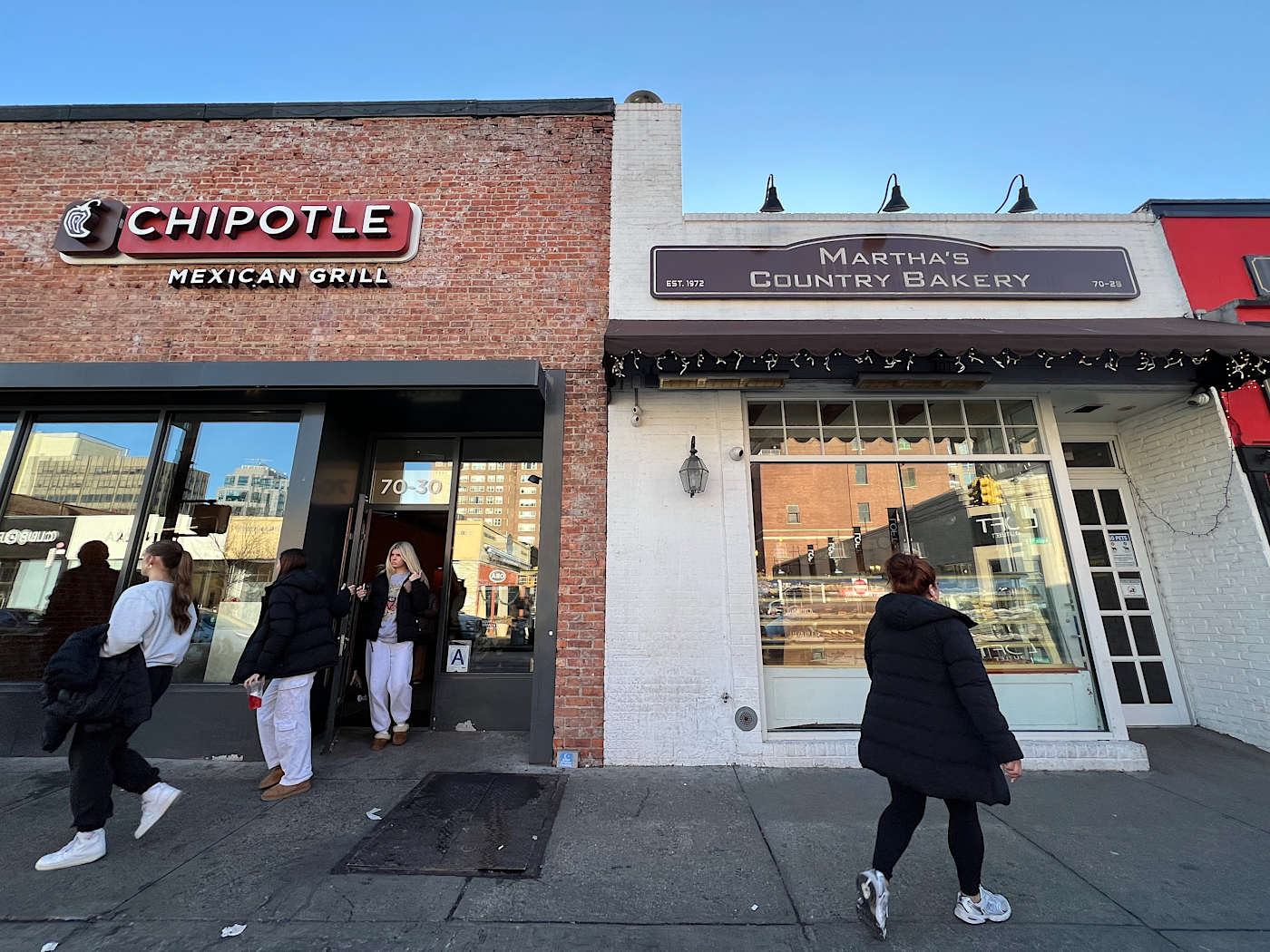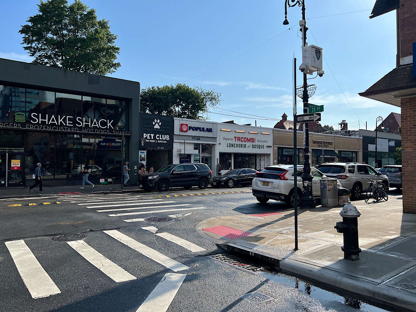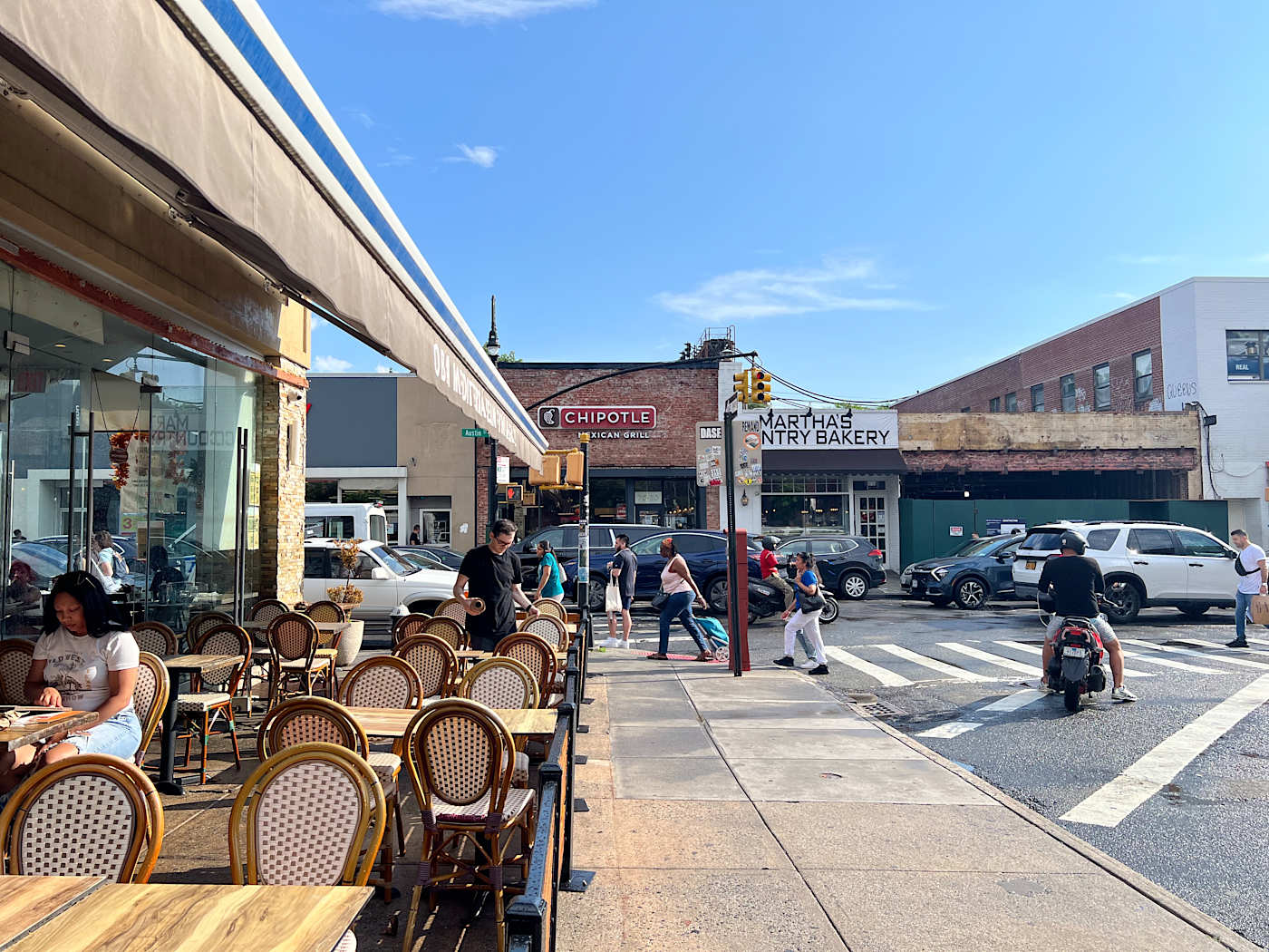 フォレストヒルズ駅の近くにあって、地域の中心となっているのがオースティン・ストリート。レストランやバーが多く、根強い人気の地元経営のお店に交じって、全米やNY近郊で展開するチェーン店が比較的多いことが特徴的です。例えばバーベキュー(Mighty Quinn's)、ハンバーガー (Shake Shack, McDonald's, 7th Street Burger)、フライドチキン (Mad for Chicken)、ベーカリー (Martha's Country Bakery, Tous Les Jours, Paris Baguette)、ラーメン、日本式クレープ (T-swirl Crêpe)、あまりオーセンティックではありませんがメキシコ料理 (Chipotle)があります。2025年にはサラダボウルの Sweetgreen と Just Salad、そしてチキンサンドイッチチェーンの Chick-fil-A が開店しました。