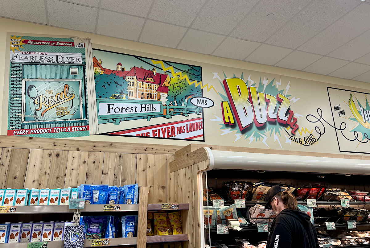 『スパイダーマン』の主人公、ピーター・ベンジャミン・パーカーは、Forest Hills High School に通う科学好きの高校生という設定です。コミックブック文化の伝統を偲んで、最近フォレストヒルズに開店した Trader Joe's の内装には、吹き出しやコマ割りやスクリーントーンの効果をふんだんに使ったイラストが描かれています。