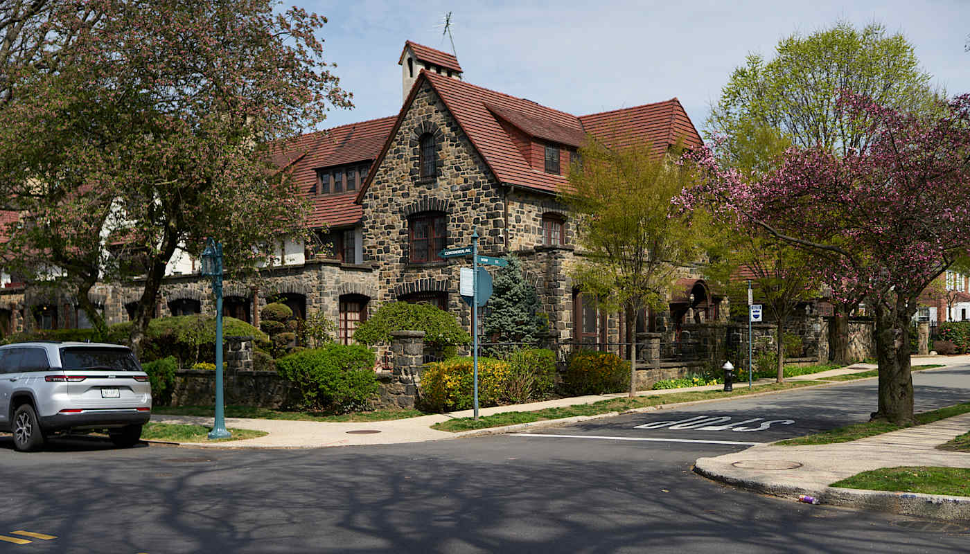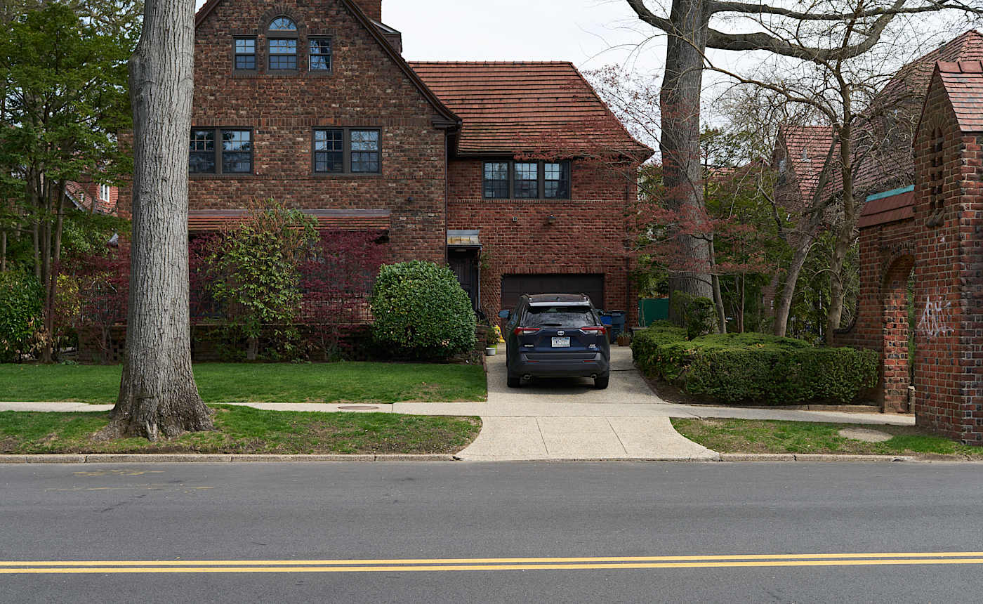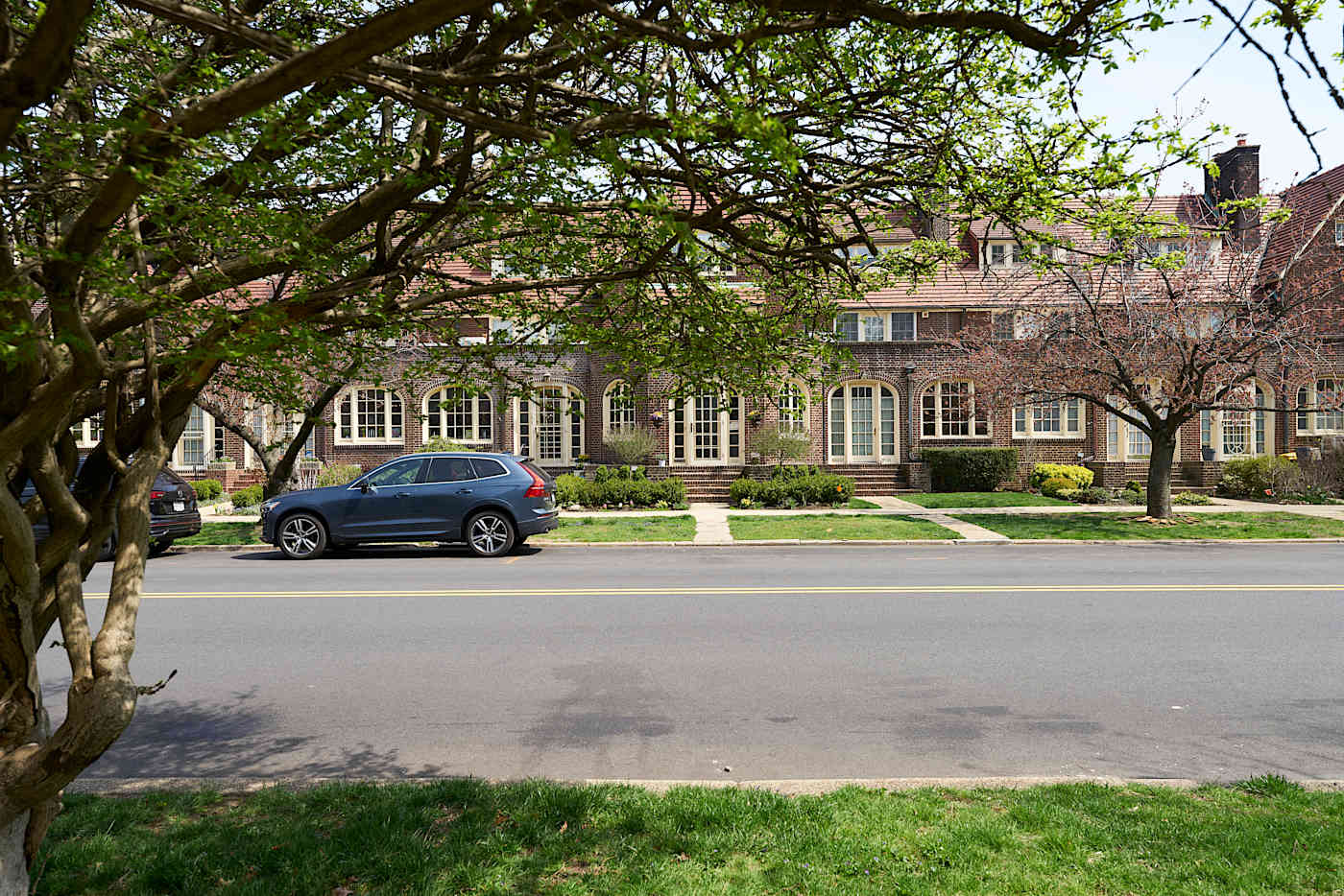 フォレストヒルズのうち、ロングアイランド鉄道 (LIRR) の南側の大部分と、クイーンズ・ブールバード北側の Forest Hills High School 付近までは、整然とした区画の高級住宅地 (一部は教会) で、チューダー様式 (ドイツ風の、白い壁に柱や梁が見える木組みで、屋根に勾配がある建築様式) やジョージア様式の一戸建て住宅が並んでいます。その多くは芝や低木で囲まれた前庭や裏庭を有しています。このエリアにタウンハウスやコープもありますが少なく、賃貸専用ビルは一つのようです。