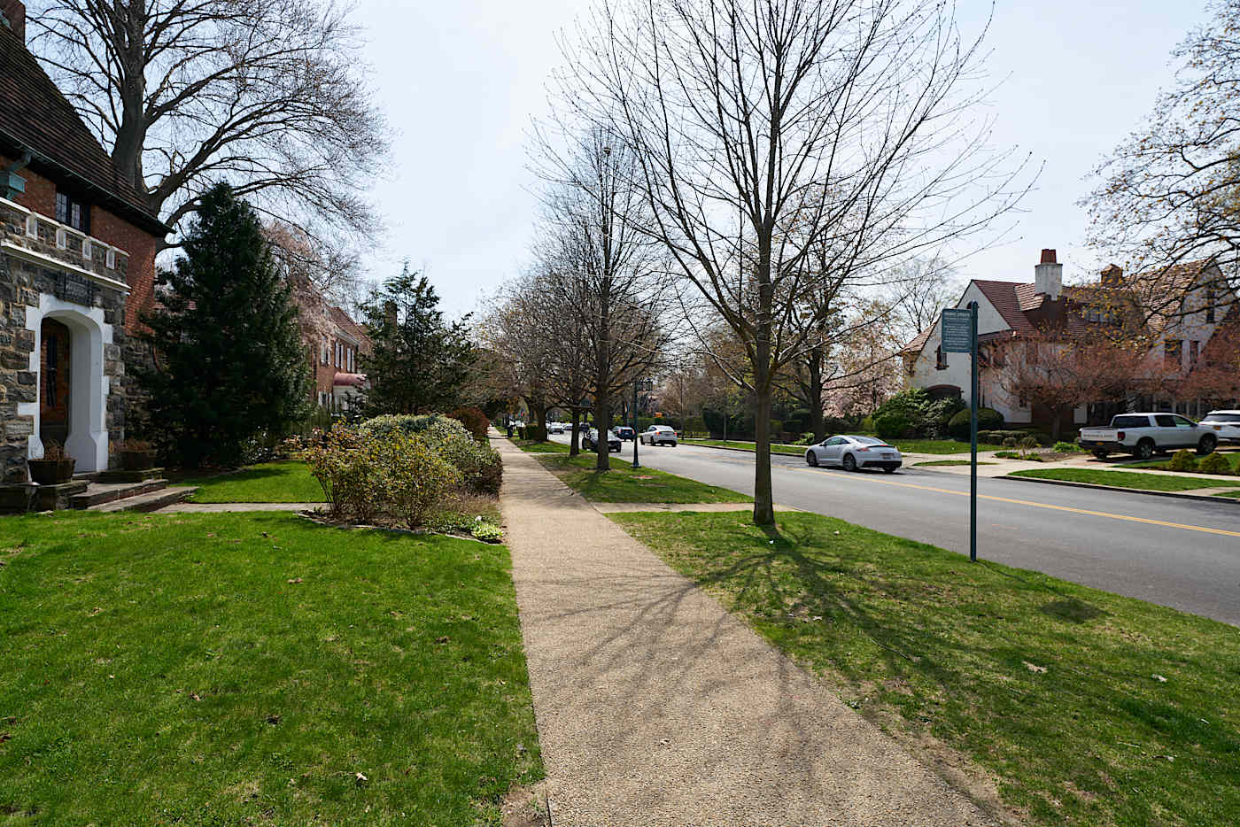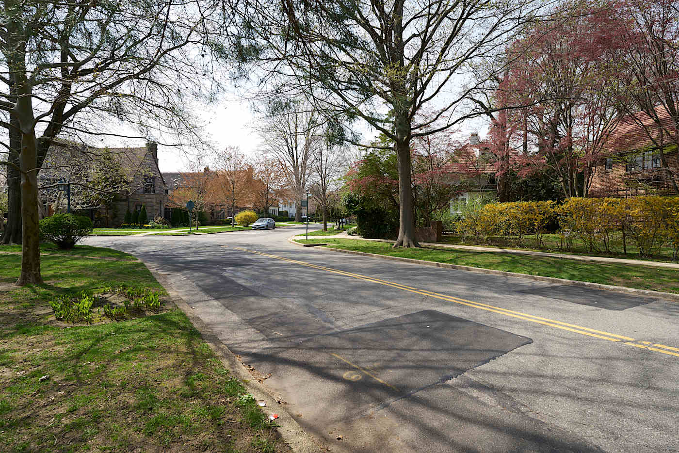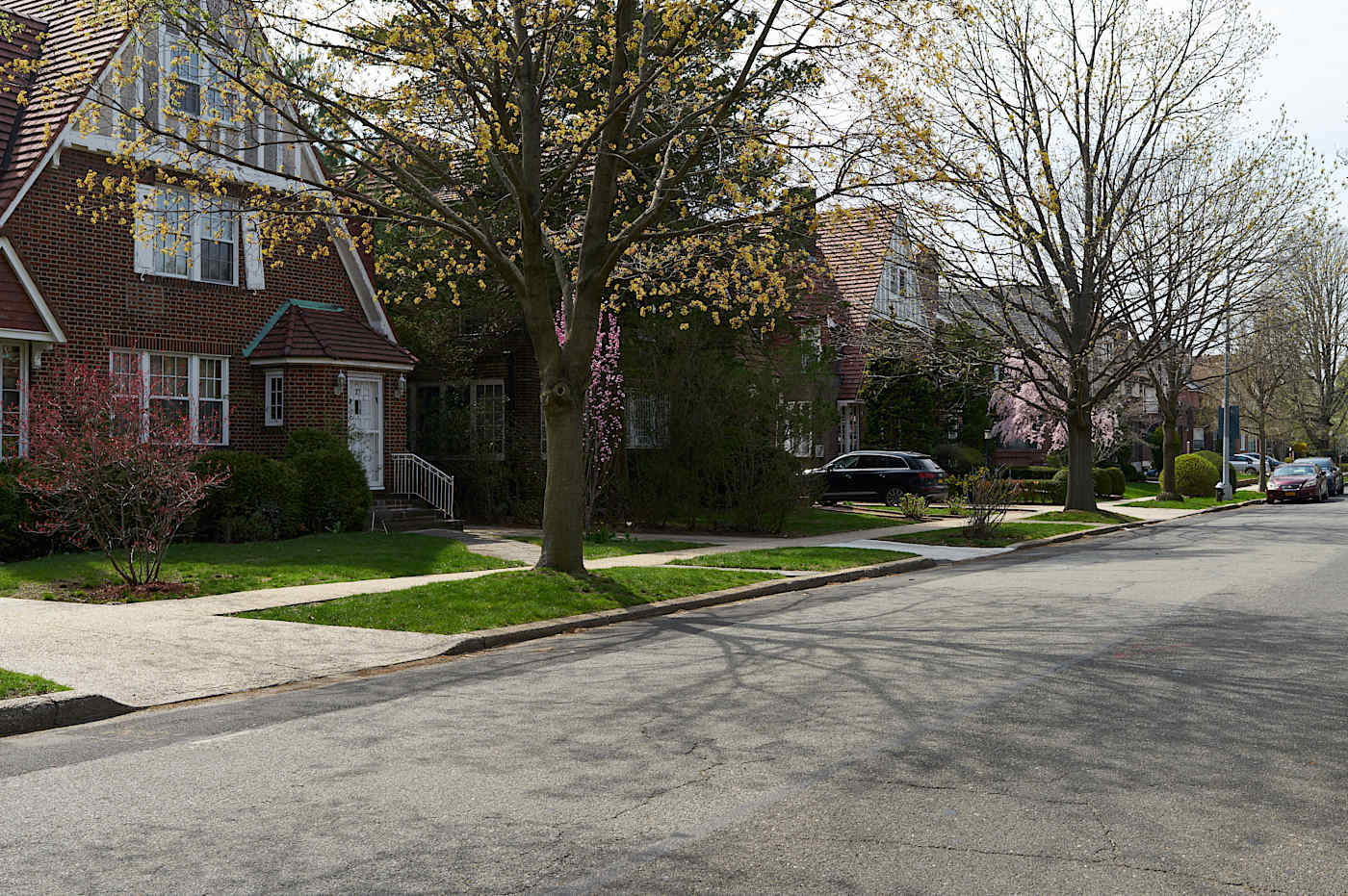 ロングアイランド鉄道 (LIRR) フォレストヒルズ駅の南側や、幹線道路のクイーンズ・ブールバード Queens Boulevard 北側の一部地区には、芝に囲まれた歴史ある一戸建て住宅が建ち並び、郊外のような風情があります。