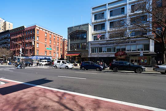 ☆☆ 豆知識 ☆☆ East Village の中に、Little Ukraine と呼ばれる地区があります。19世紀末にウクライナからの多数の移民がコミュニティーを形成した地域で、南北では 7丁目から4丁目、東西では 3rd Ave から最遠で Avenue A までのエリアです。現在、ウクライナ系の店舗は数えるほどになりましたが、それでもニューヨークシティに住むウクライナ系人口の3分の1がこのエリアに居住します。