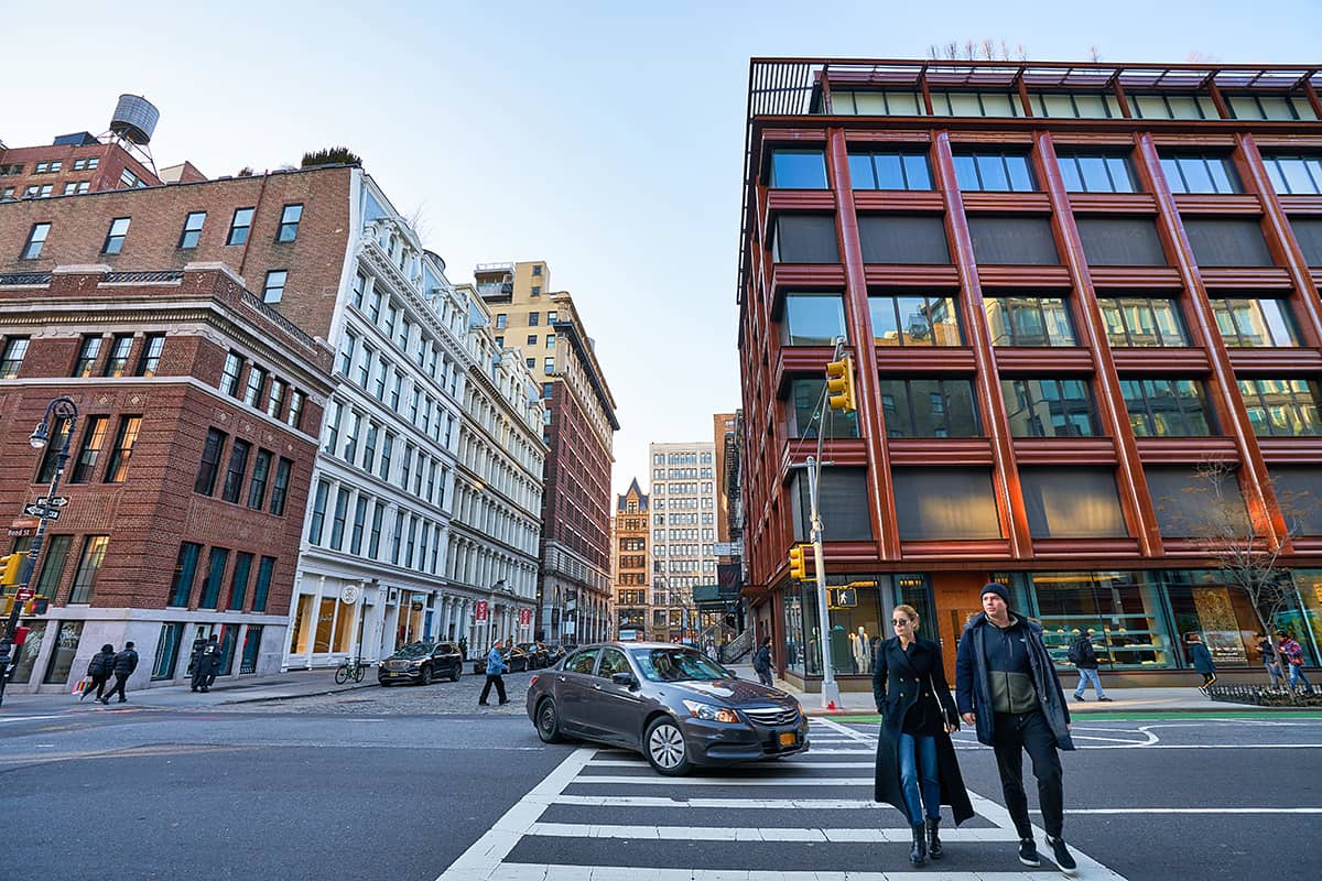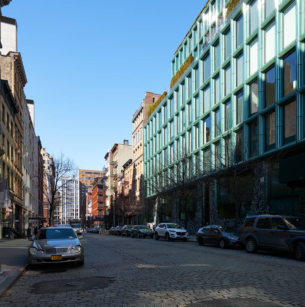 ソーホーにも多い、キャスト・アイアン様式の建物が目立ちますが、現代の建築物でもキャスト・アイアンを模範にした建築様式を採用することがあり、地域に溶け込んでいます。