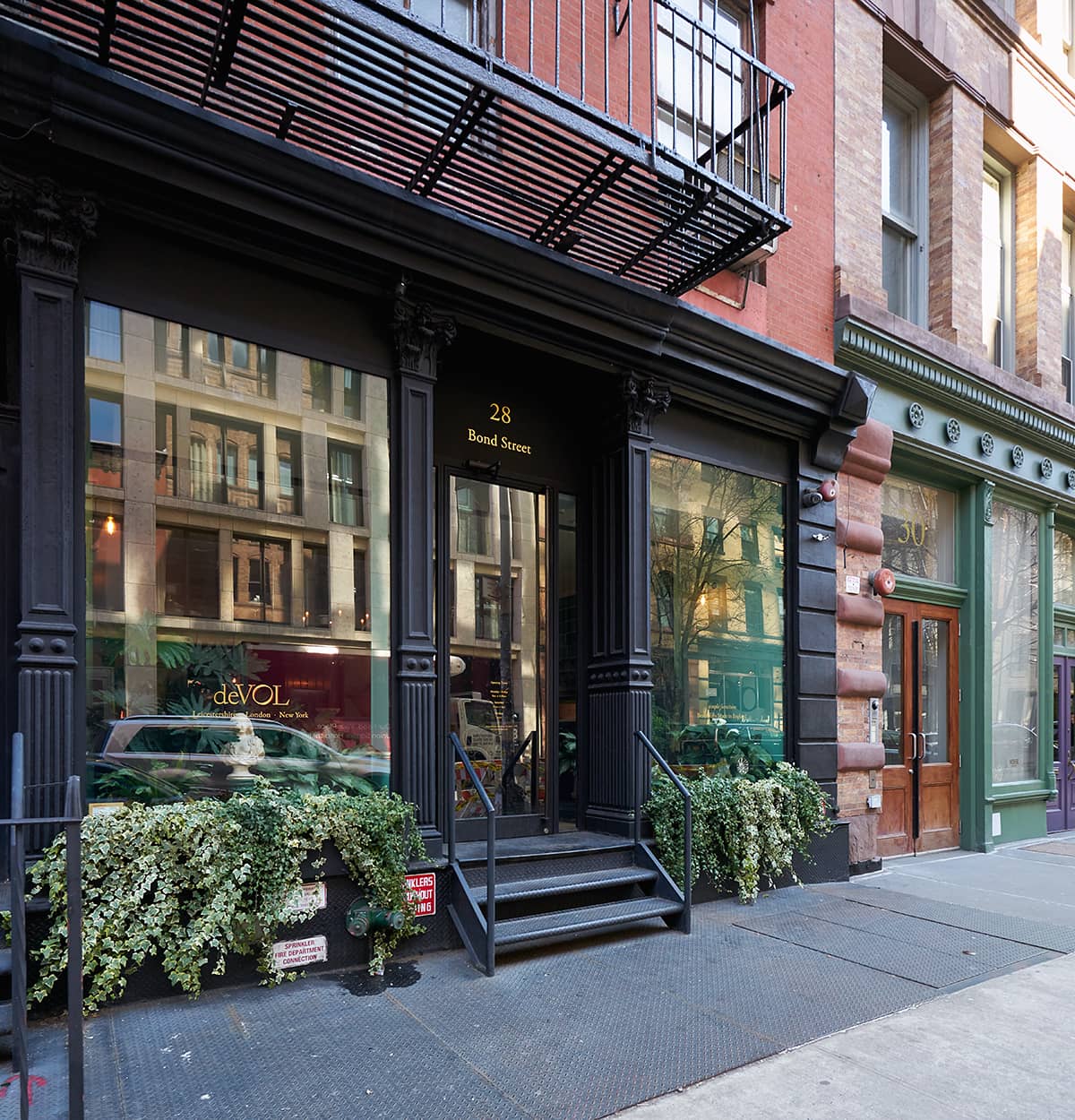 マンハッタンの2丁目、3丁目は、このエリアを通るとそれぞれ Bond St、 Great Jones St と名称が変わります。Bond St には石畳が残り、上記の独特のデザインの建築に囲まれて、1階にはイタリアのファッションブランド、セレクトショップ、家具のお店、レストランなどが入っています。