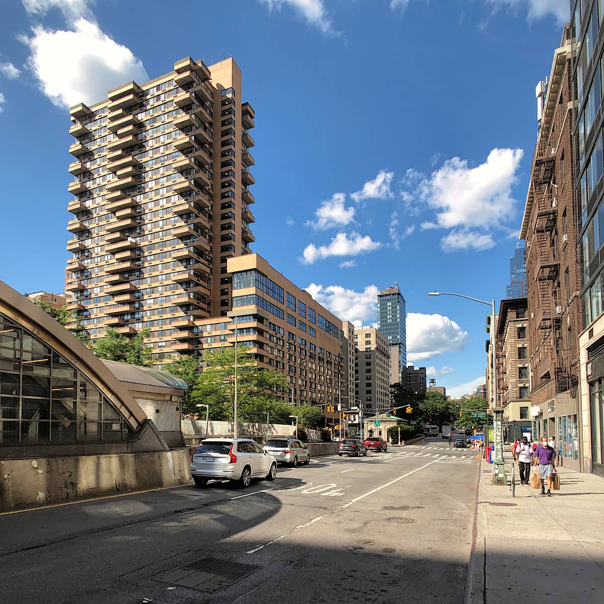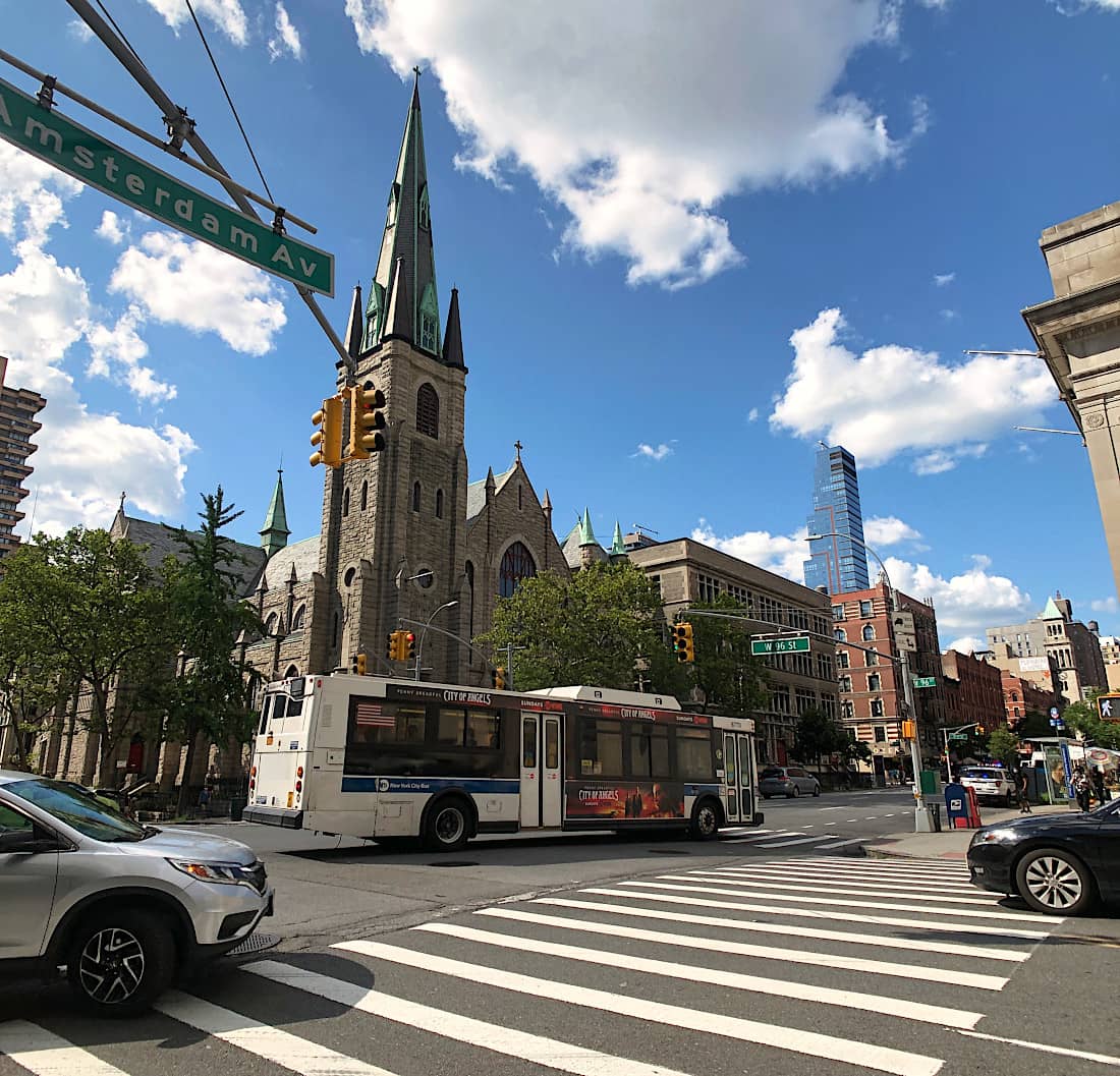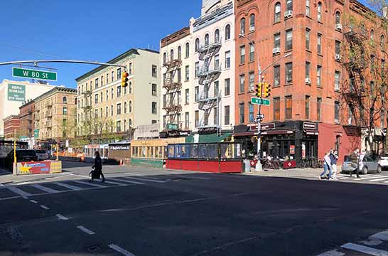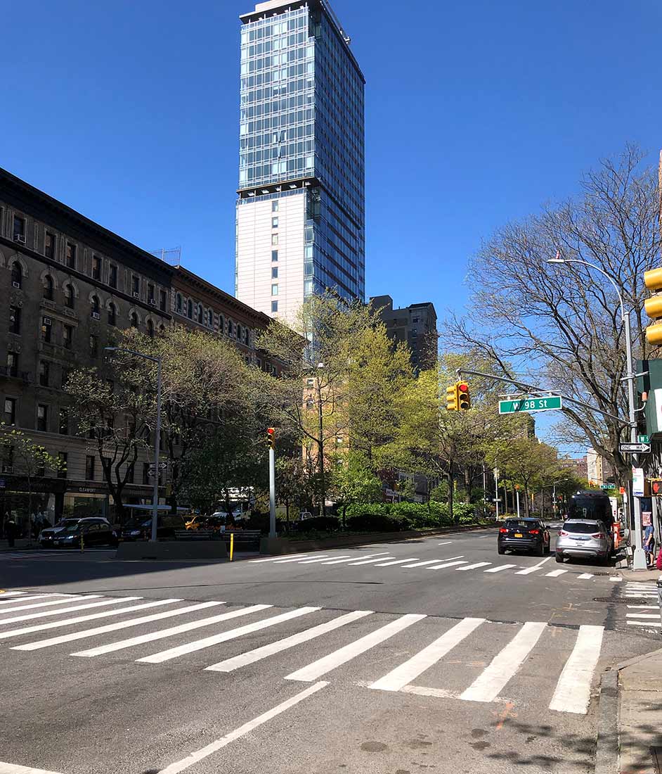 アッパーウェストサイドは、19世紀末から20世紀初頭に地下鉄の延伸に合わせて住宅開発がブームになった頃からの住宅地です。ミッドタウンやダウンタウンの多くの地域と比べて商業地が少なく、Broadway は、南を見ても北を見ても、圧倒的に住宅ばかりが立ち並んでいることが分かります。