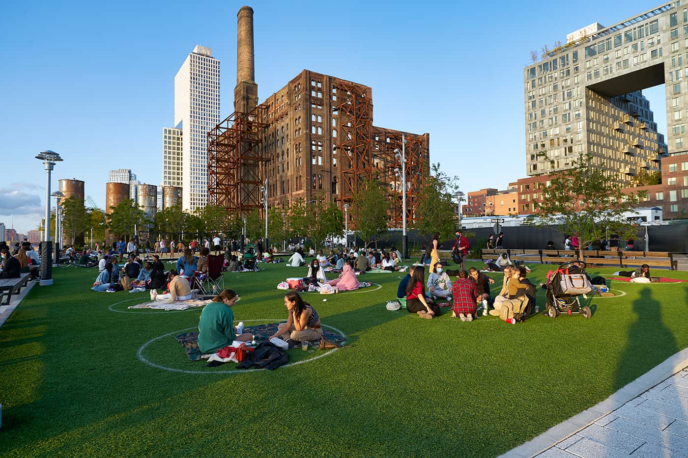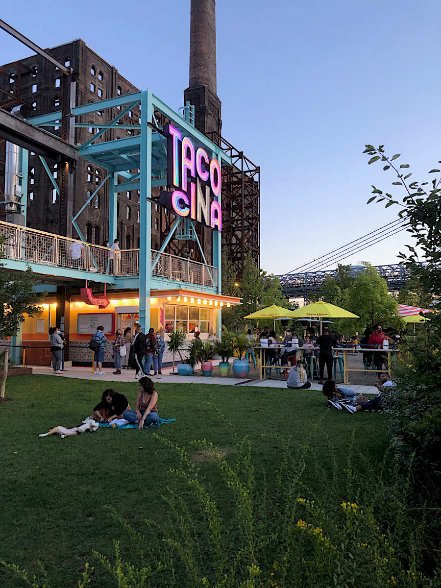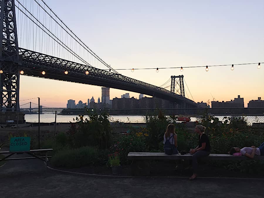 再開発される直前のDomino Park. 夏の終わりの風景。後ろはWilliamsburg Bridge.