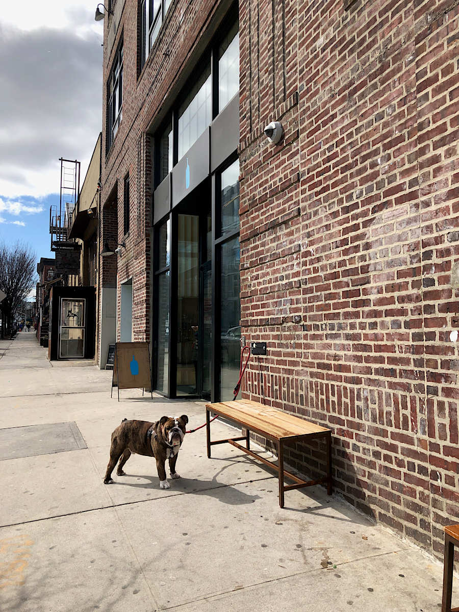 Kent Aveから一本東のWythe Ave沿いには、Rivianのショールームができていますが、良い立地を選んだと思わせられます。そしてそういった新しいお店の多くが、古い建物を活用してリノベートした商業スペースに入っていることがこの地域の特色です。