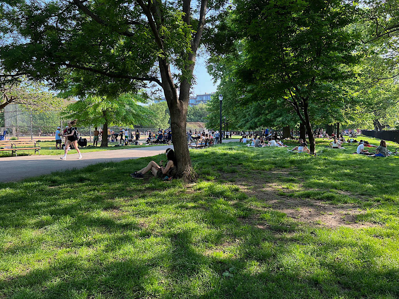 Bedford Ave を北に進んだ先、ウィリアムズバーグ北部の McCarren Park (マッカレンパーク) には広い芝生があり、家族や友人同士で談笑したり、ピクニックのように楽しむ人、時には一人で木陰のハンモックにぶら下がる人がいるなど、色々な楽しみ方が見られる憩いの場です。ソフトボール場、体育館、陸上トラックと人工芝の多目的フィールドがあり、夏季には巨大な屋外プールが無料で利用できます。プールの大きさは49万7千スクエアフィートで、オリンピックサイズ・プールの3.7個分、強いて住宅になぞらえると広めの2ベッド住宅の41戸分です。詳しくは NYC Parks のウェブサイトにある案内ページからどうぞ。