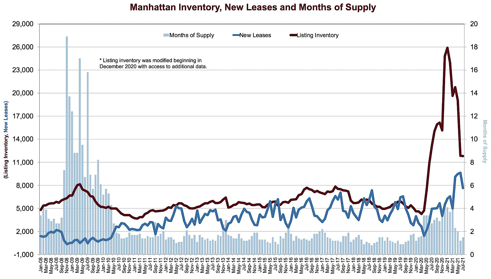 前々回のコラムで、2021年7月のマンハッタンにおける空室の枯渇と家賃の急上昇ぶりを、観察と Brick Underground の記事に基づいてご説明しました。それを裏付けるデータが出されましたのでご紹介します。
