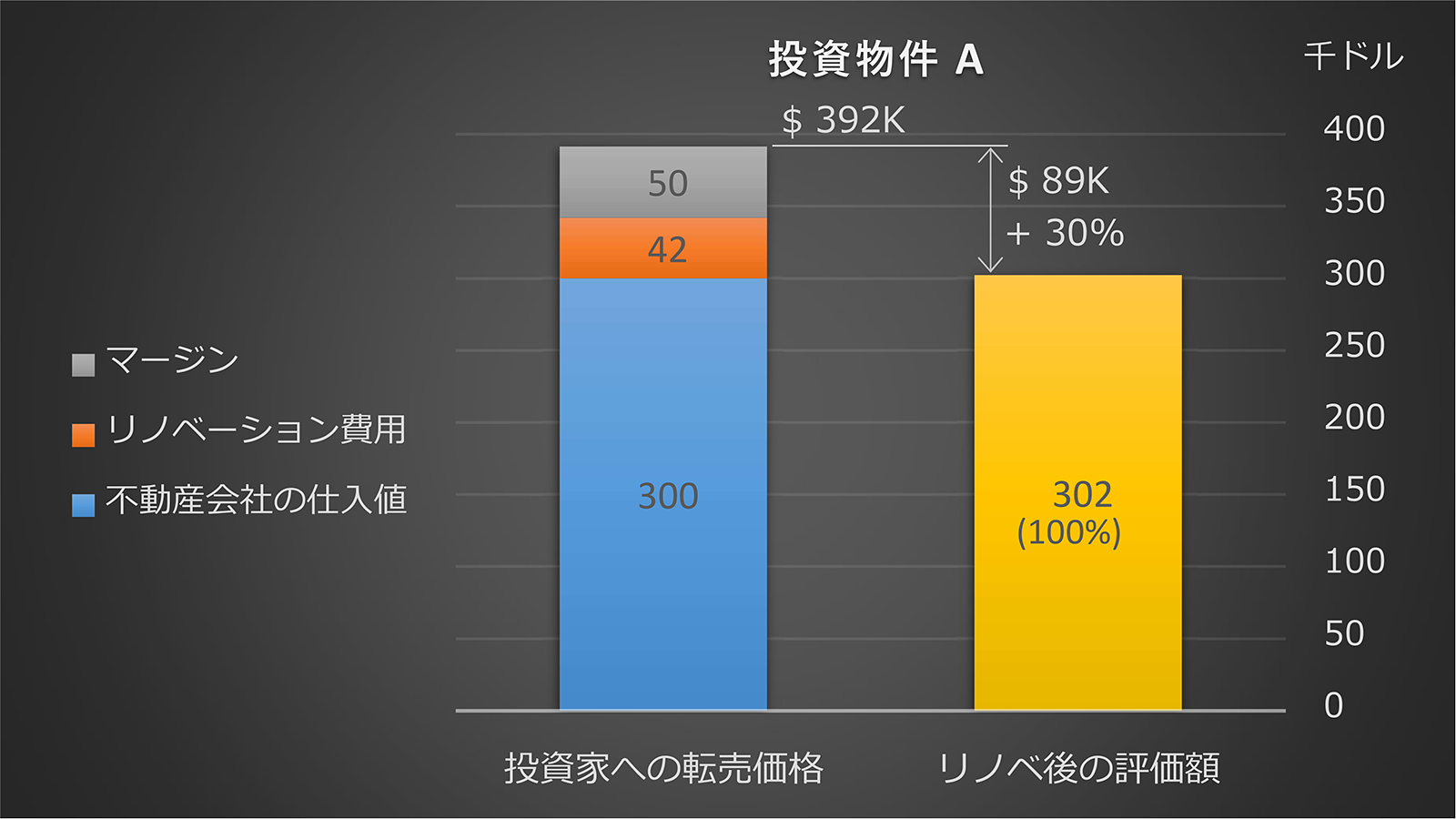 日本の不動産会社、及びその一部の米国子会社は、米国の売主から不動産を購入し、「X%の表面利回り」「年Y%の価格上昇が見込める」「優良投資用不動産」と宣伝して、主に首都圏で開催する「不動産投資セミナー」に集まる投資家に販売、つまり転売します。築数十年の相当古い物件を購入してリノベーションを行ってから販売する例も多数です。